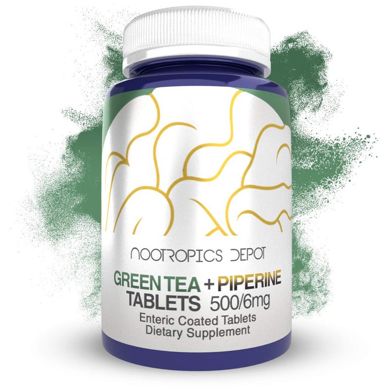 Nootropics Depot Green Tea Extract Tablets | 60 Count | 500mg | Minimum 45% EGCG + 6mg Piperine | Enteric Coated