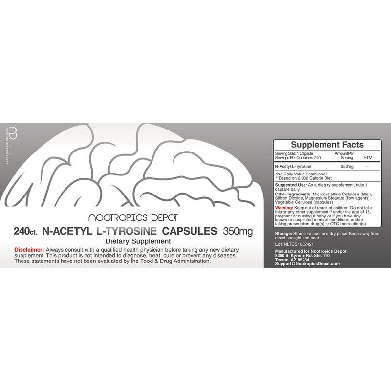 Nootropics Depot N-Acetyl L-Tyrosine Capsules | 350mg | 240 Count | NALT | Amino Acid Supplement | Natural Supplement | Supports Memory, Learning, Focus, Healthy Stress Levels