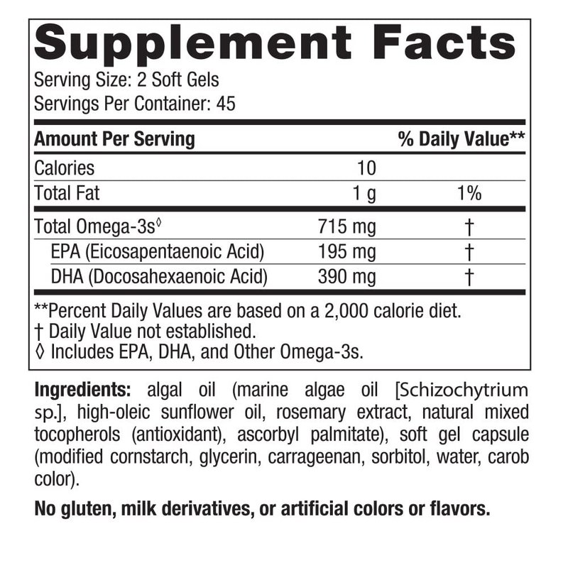 - THE NUMBER ONE VEGETARIAN OMEGA-3 IN THE U.S. - Research shows that the essential fatty acids EPA & DHA in algae oil support heart, eye, immune & brain health.