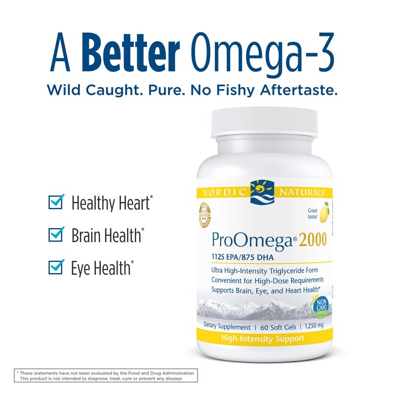 Nordic Naturals ProOmega 2000, Lemon Flavor - 2150 mg Omega-3 - 60 Soft Gels - Ultra High-Potency Fish Oil - EPA & DHA - Promotes Brain, Eye, Heart, & Immune Health - Non-GMO - 30 Servings