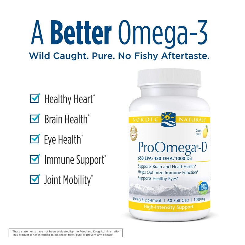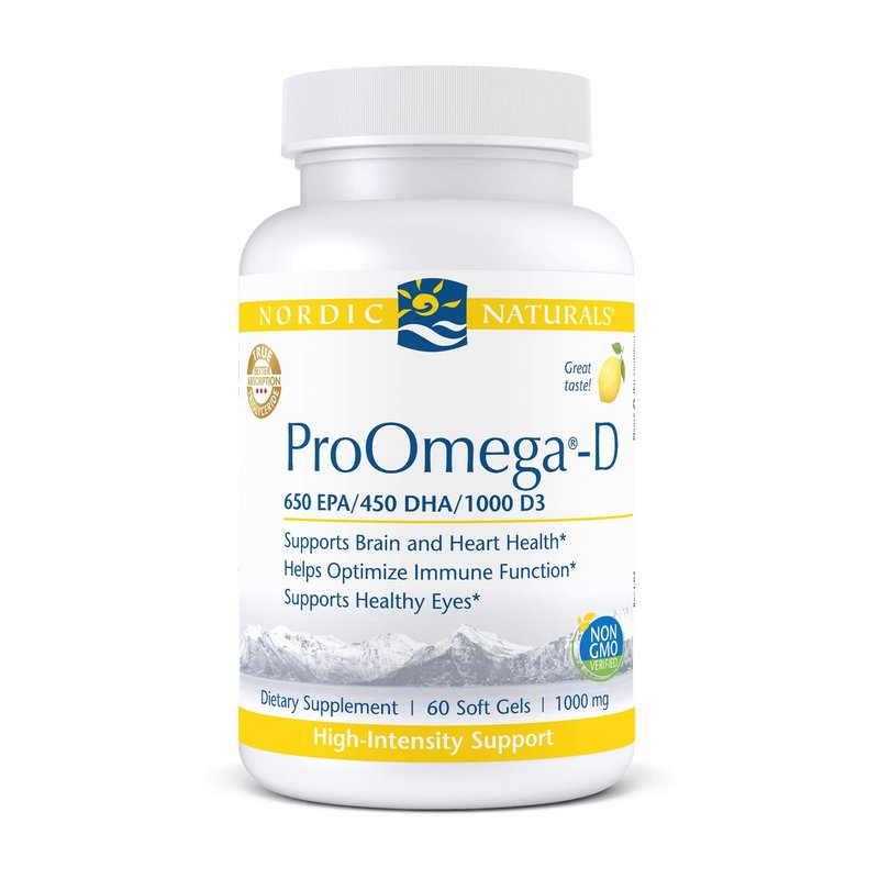 - DOCTOR-RECOMMENDED FORMULA - Nordic Naturals ProOmega-D features high concentration omega-3 fish oil in soft gels. The added Vitamin D3 aids in calcium absorption & supports mood, joint & immune system health.