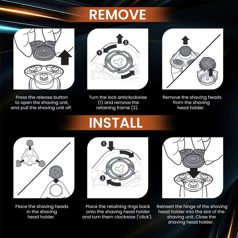 - ✅ 【Easy to Install】Replace the SH60 head in just a few minutes for a new head. After installation, apply a drop of oil on each nozzle and run for 10 seconds. It is recommended to replace your shaving head once every 12 months for maximum shaving performance.