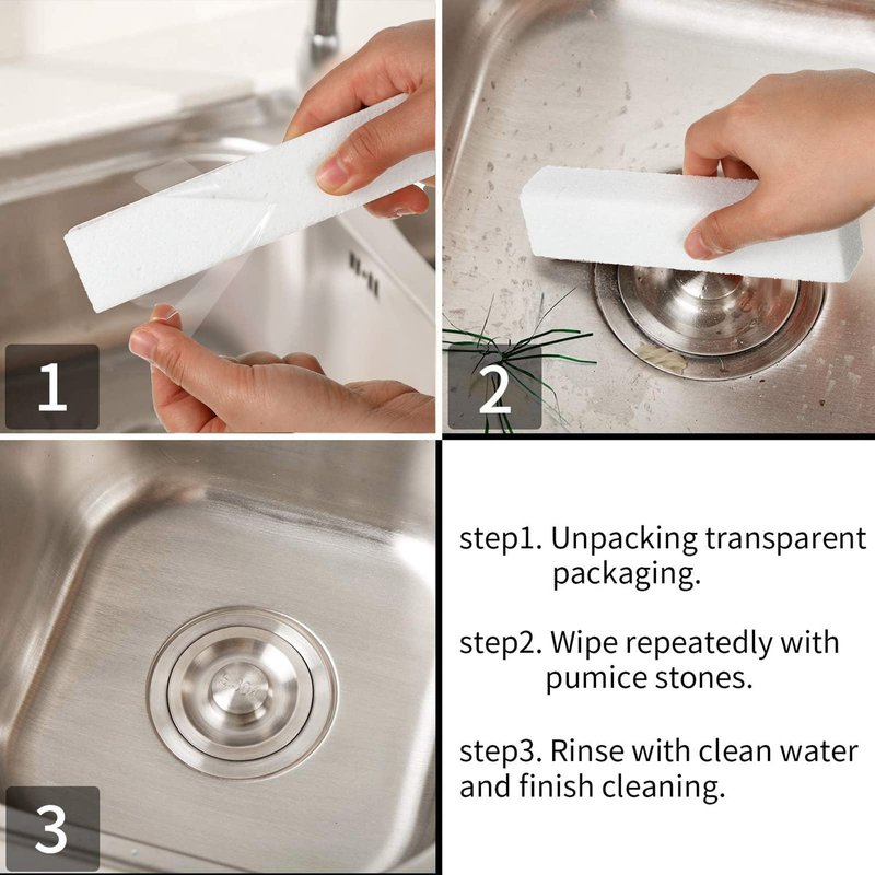 - A variety of functions: pumice sticks can be applied to clean tile, to clean bathroom and kitchen, remove hard water rings, clean rust from grills; Besides, use them to clean and scour away lime, calcium and rust build up from the pool tile or on the spa
