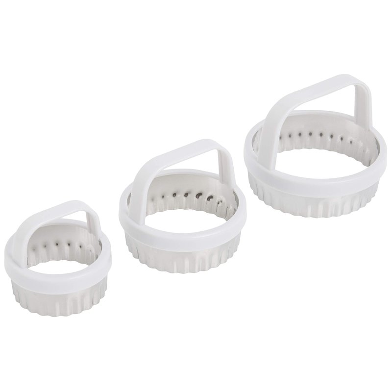 - Set of 3 cutters sizes: 1.75"/4.5cm, 2.25"/5.5cm, 2.75"/7cm