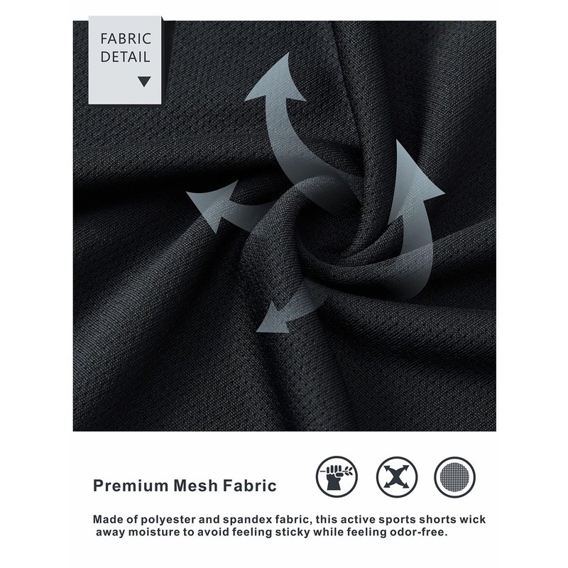 - Ultra-Breathable Mesh Fabric:These men's active shorts are crafted with a lightweight,quick-dry fabric made from 100% polyester,designed to keep you comfortable during workouts and practices.