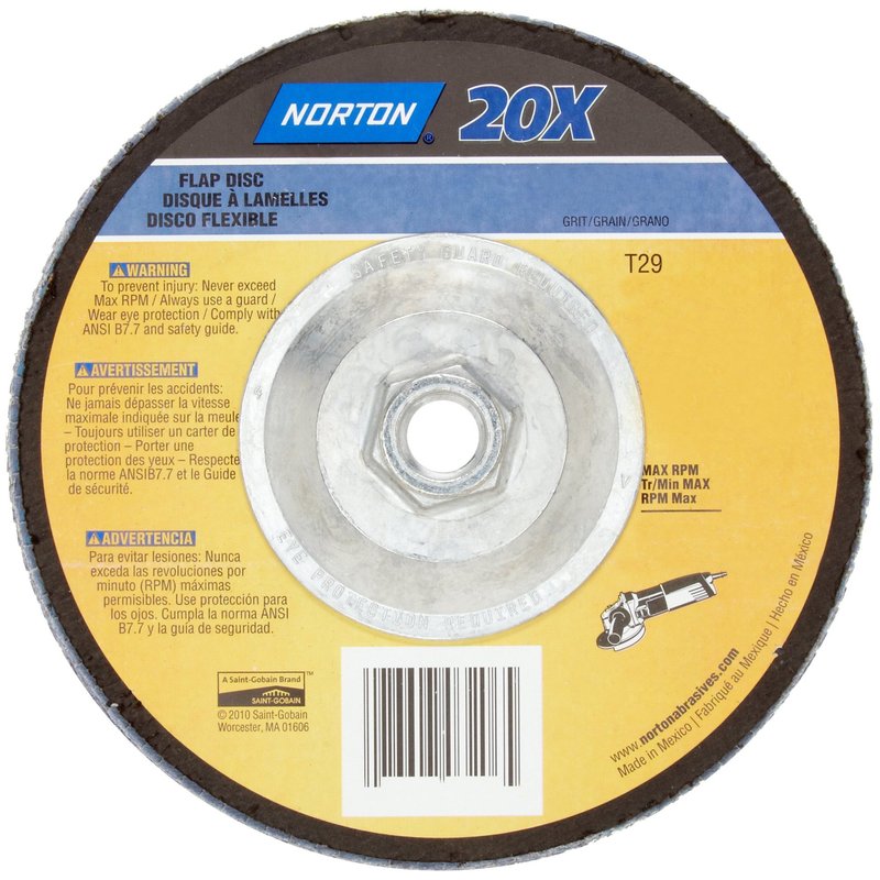 Norton 20X High Performance Abrasive Flap Disc, Type 27, Threaded Hole, Fiberglass Backing, Zirconia Alumina, 4-1/2" Dia., 60 Grit (Pack of 1)
