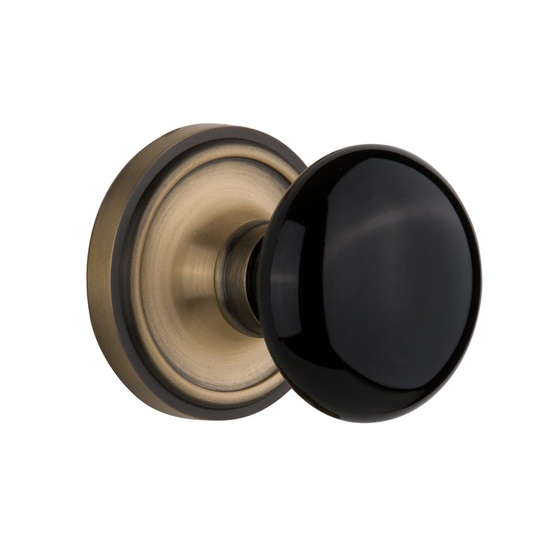 Nostalgic Warehouse 710096, Single Dummy, Antique Brass Classic Rosette with Black Porcelain Door Knob