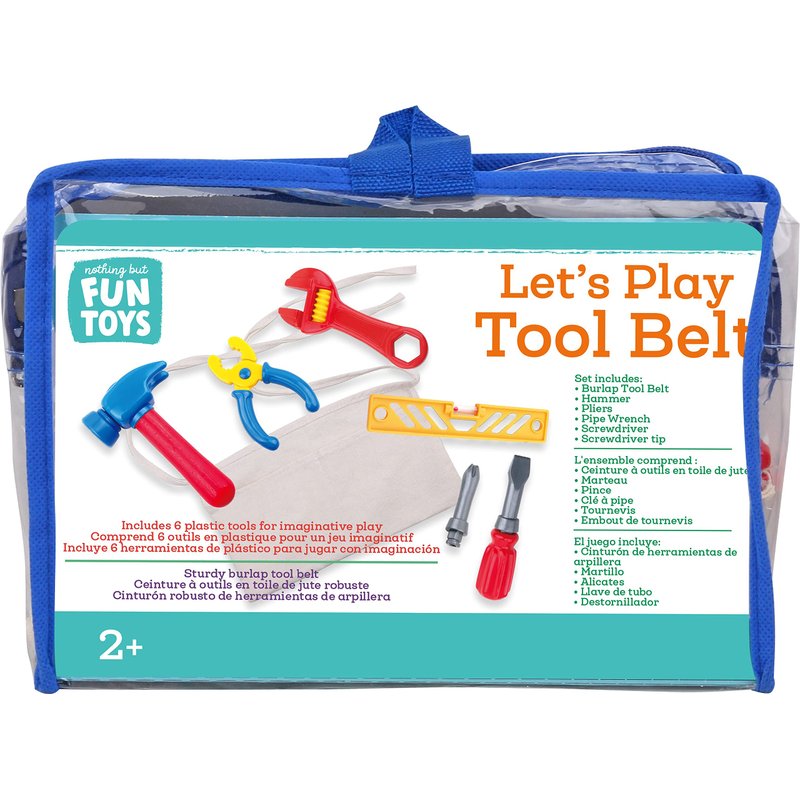 - PRODUCT FEATURES: Playset includes Let's Play Tool Belt with play hammer, pliers, wrench, screwdriver with bits, and a level.