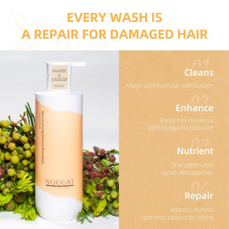 NOUGAT Moisturising Glossy Shampoo, Deep Repair & Nourish with Amino Acid and Vitamins, for Dry and Damaged Hair, SLS & Paraben Free