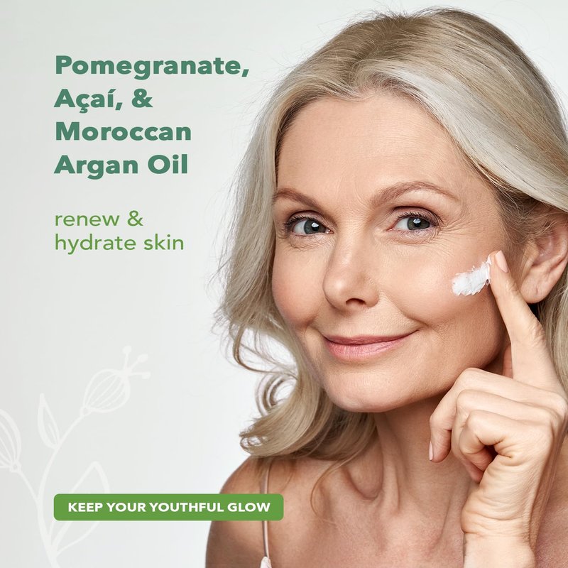Nourish Organic Face Cream, Pomegranate Acai + Argan – Ultra Hydrating Formula with Aloe Vera & Green Tea Extract, 1.7 Oz + Washable Cotton Round