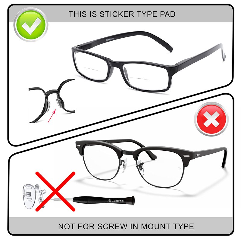 • 【Wide Application】 You can use these nose pads for prescription glasses, reading glasses, wireframe glasses, sunglasses and safety glasses etc. Installation of these nose pads requires no tools, such as screws, screwdrivers, etc