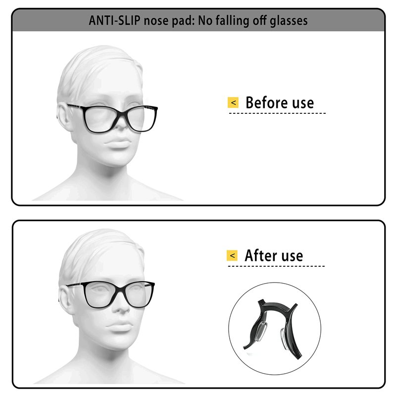 • 【Easy Using】 the self-adhesive nose pads are easy to apply. Simply peel and stick to your eyeglasses. It can reduce the space between the nose and the frame. Your eyeglasses will stay in place and you'll feel more comfortable wearing them
