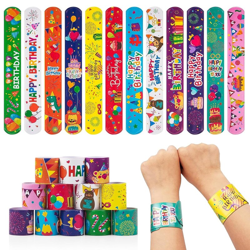 NovaHance 36 PCS Happy Birthday Slap Bracelets Kids Party Favors,Bulk Snap Bracelet Party Favors Supplies for kids&teens Gifts Teacher Classroom School Favors