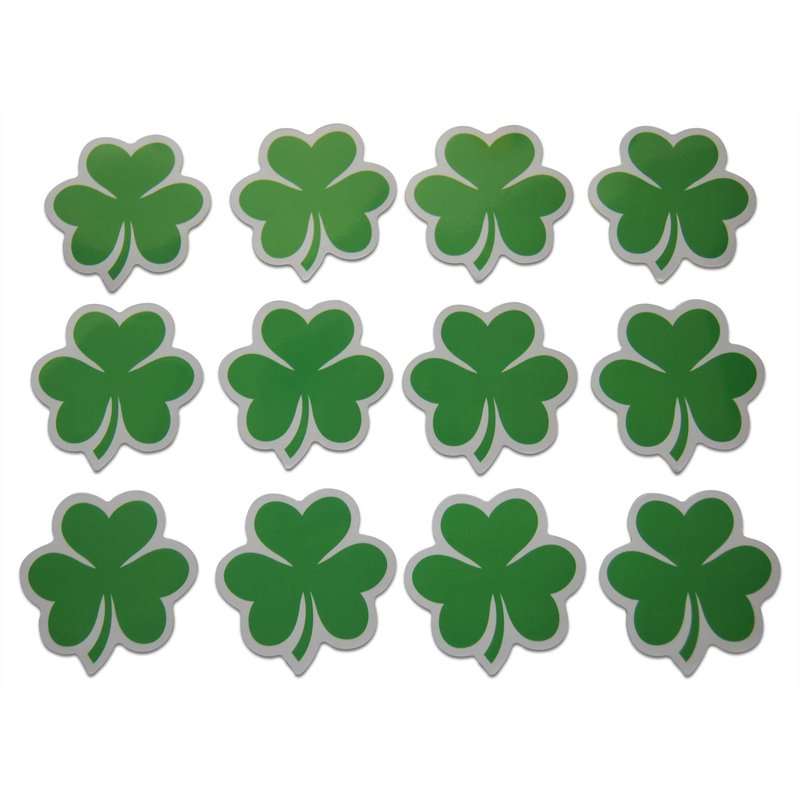 - 12-PIECE SHAMROCK MAGNETS measure 2.5 inches by 2.5 inches with thick mil of magnet construction. These make ideal giveaways, carnival prizes or party favors in gift goody bags as stuffers.