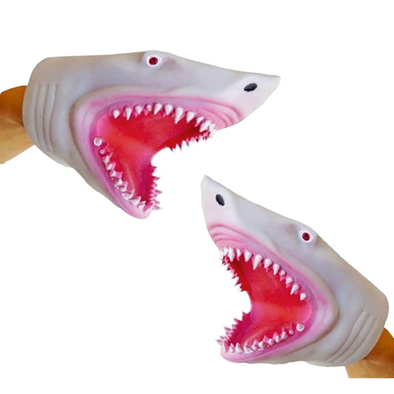NOVELTY GIANT WWW.NOVELTYGIANT.COM Set Of 2 Silicone Great White Megalodon Shark Hand Puppet