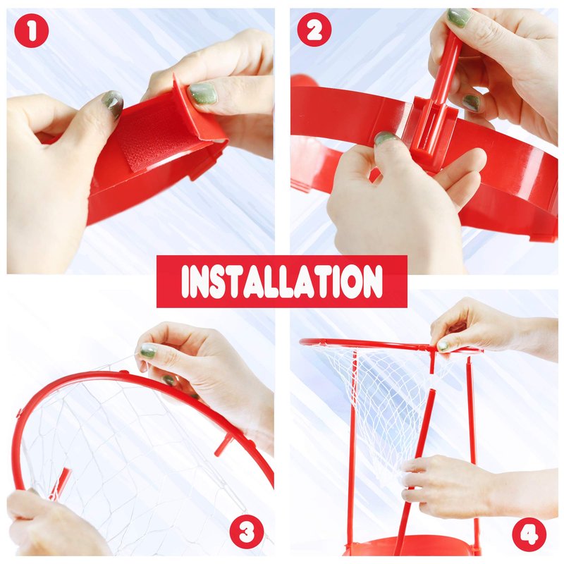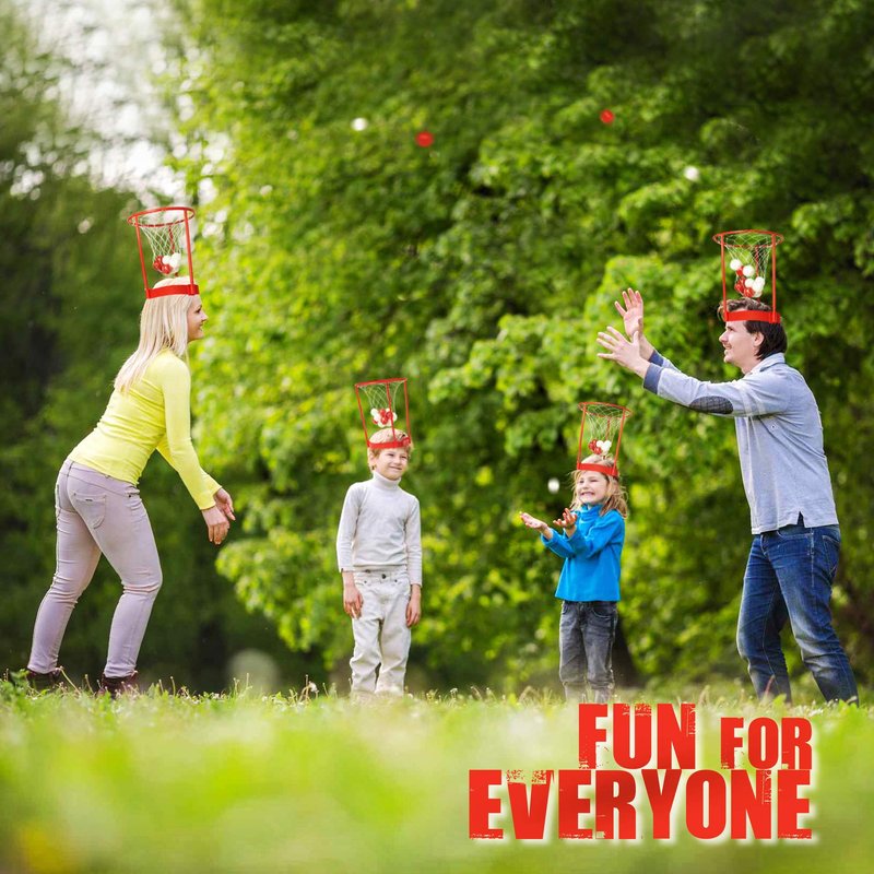 - Package Includes - Each package comes with 2 sets of head basketball hoop, 2 headbands, 2 hoops, 2 nets, 6 tubes, 10 white balls, 10 red balls, makes a great present to your loved kids and friends!