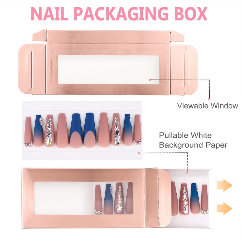 - 💰💰【Promote Consumption】-- False nails packed in a high-end press on nail packaging box, will appear that your product is different from other products, which virtually increases the added value of your press on nails, attracts the attention of consumers and generate their impulse purchases.