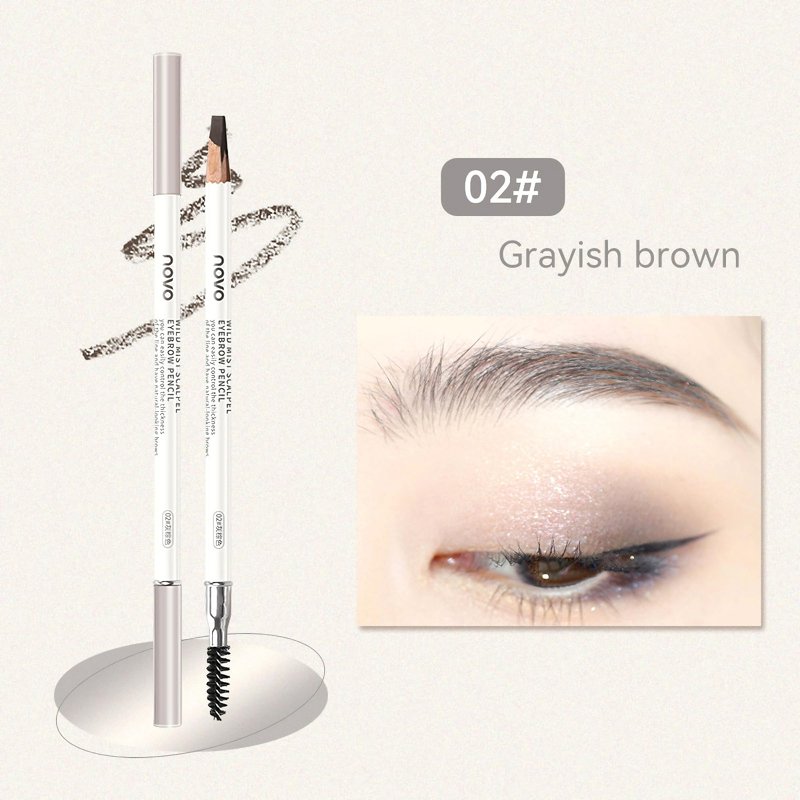 Novo Dual-Ended Waterproof Eyebrow Pencil - Angled Tip for Hair-like Strokes & Precise Shaping, Built-in Spiral Brush, Smudge-Proof, Long-Lasting Brow Pen for Defined, Natural Brows