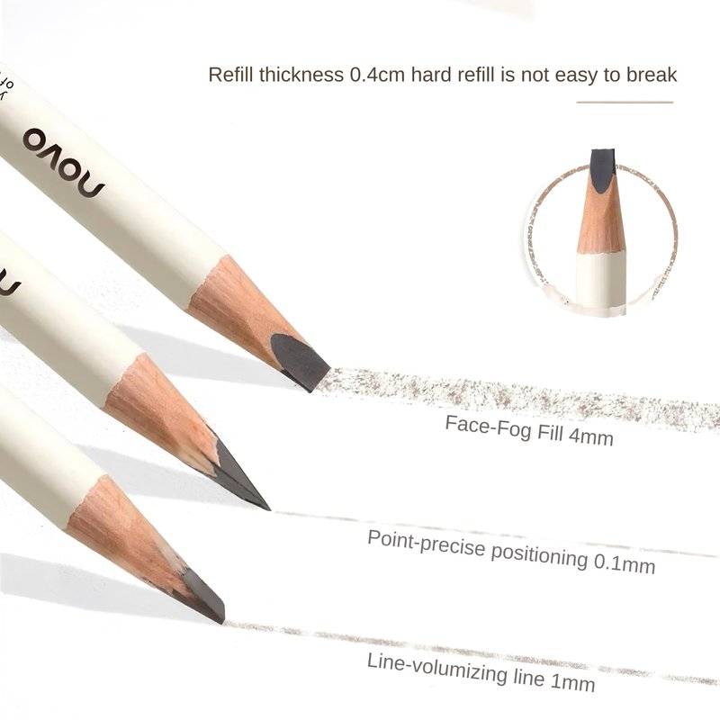 - Achieve all-day long-lasting results with the Novo eyebrow pencil, designed to stay in place without fading or smudging, even in hot or humid environments.