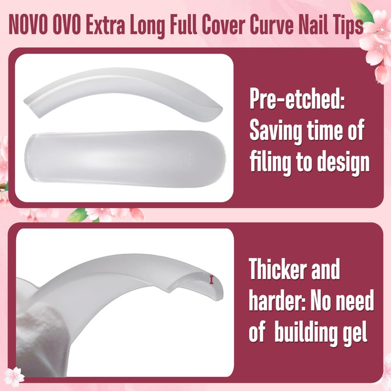NOVO OVO Curved Nail Tips Press on Full Cover, Extra Curve Square Gel x Thick Long XL XXL Acrylic Fake Nails Extension kit, Clear Pre-etched Soft French False Nail 12 Sizes 240pc (QUEEN SQUARE PRO)