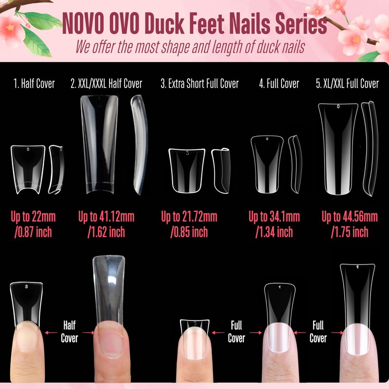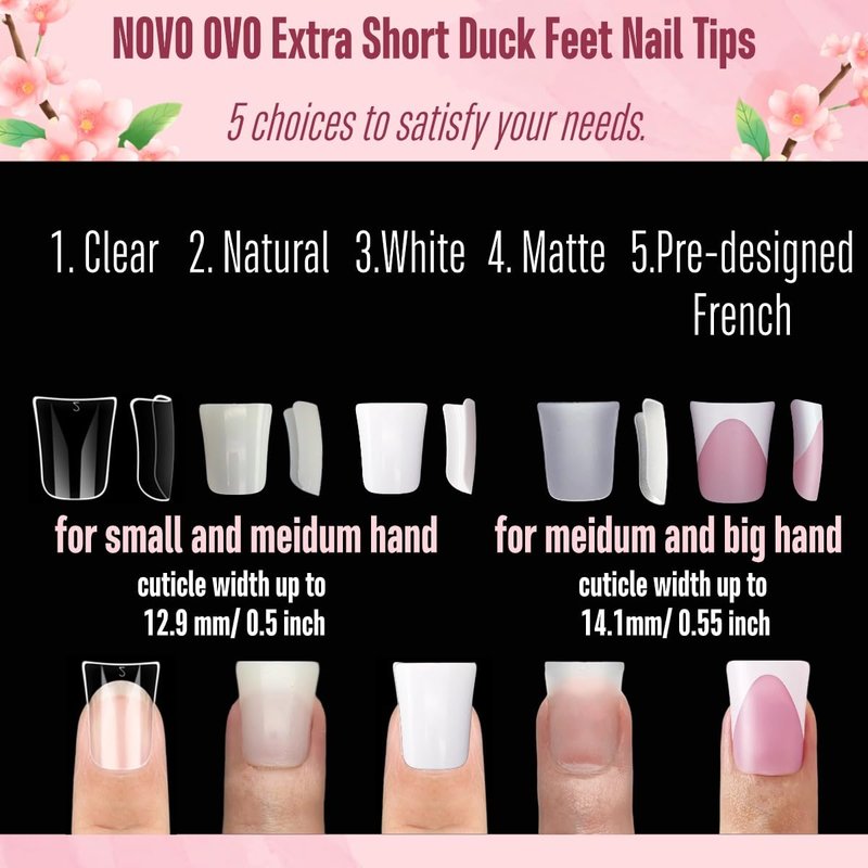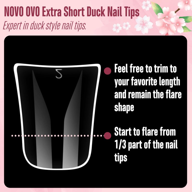 - 👍 EXTRA SHORT DUCK NAILS WITH COMPLETE COVERAGE: Our nail tips are uniquely designed with a shorter length, providing ultimate comfort for everyday wear. No longer will you have to trim them down from Medium, Long, XL, or XXL lengths - our short duck nails are ready to use right away. If you prefer an even shorter length, simply file them down to your desired size while still maintaining their distinctive flare shape.