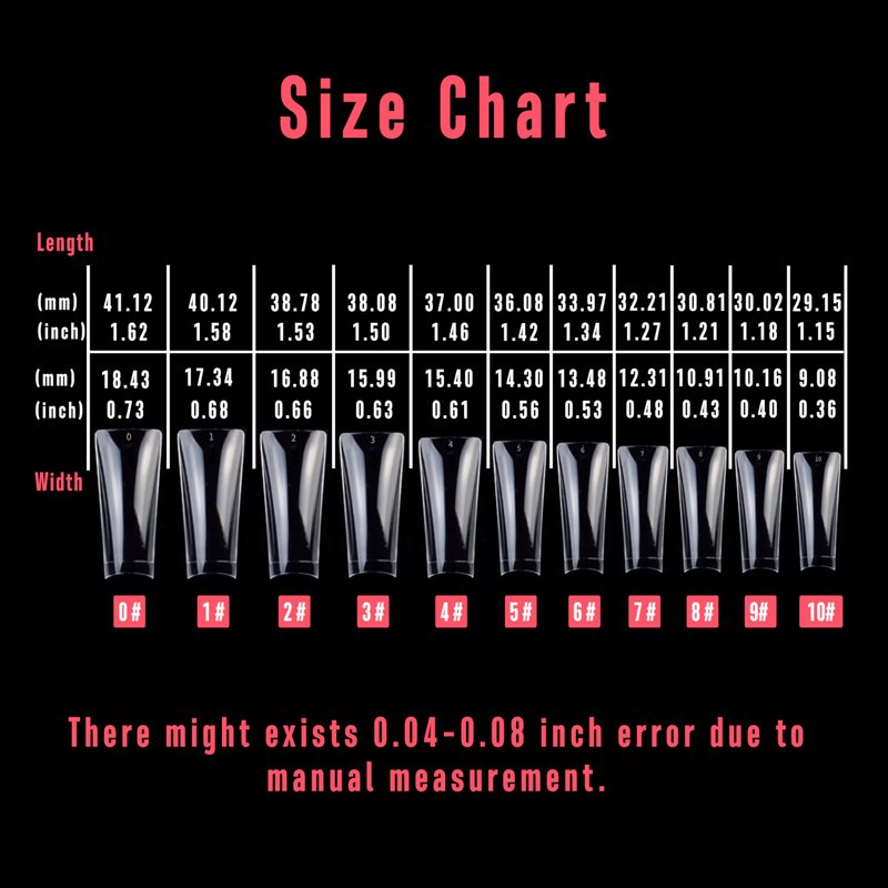 - VARIOUS SIZES OPTIONS: Our nail tips come in 11 different sizes to cater to a variety of finger sizes, especially friendly for those with wide nail beds. We have designed these tips to provide half coverage, making it easier for both professional salons and DIY users to create stunning manicures.
