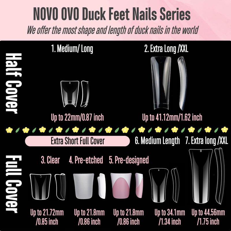 - ENVIRONMENTALLY FRIENDLY: All our nail tips are made from harmless materials, are cruelty-free, and never tested on animals. In addition, NOVO OVO is actively involved in the Packaging Recycling System in Europe and strictly adheres to European standards for reusable packaging.