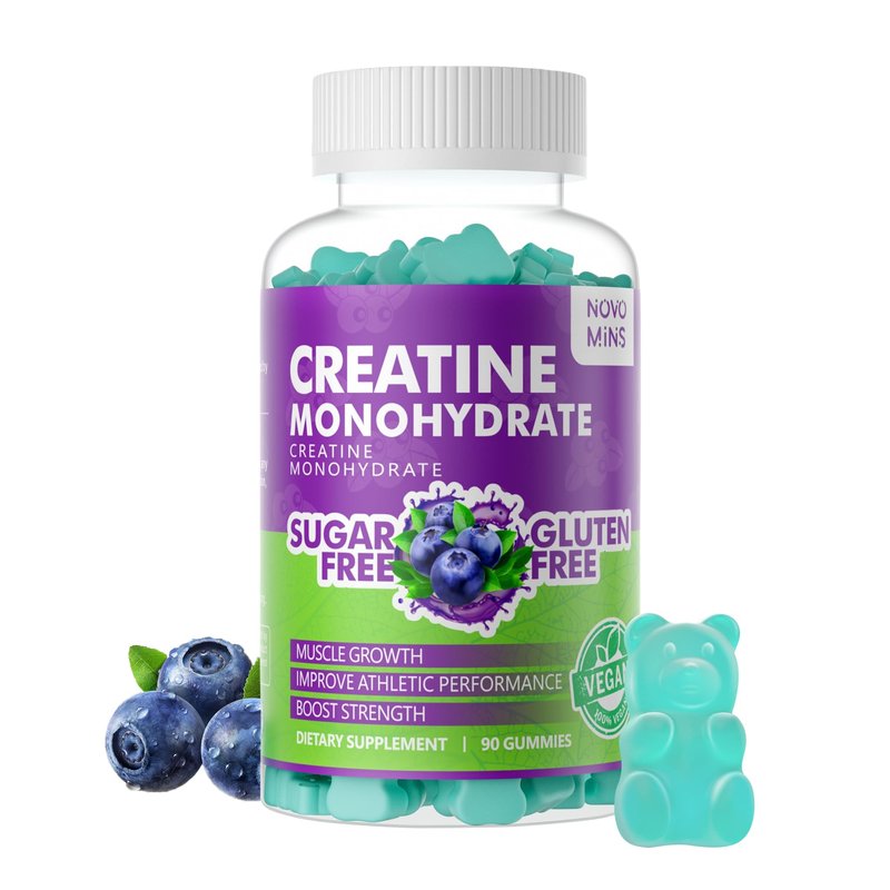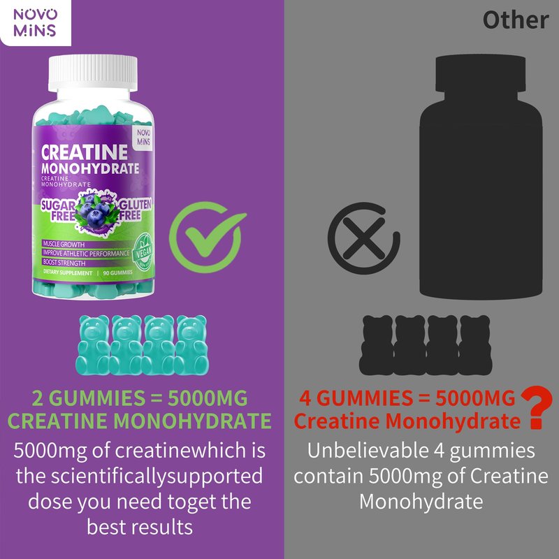 Novomins Creatine Monohydrate Gummies 5000mg for Men & Women, Chewables Creatine Monohydrate for Muscle Strength, Muscle Builder, Energy Boost, Pre-Workout Supplement(90 Count)-Blueberry flavor.