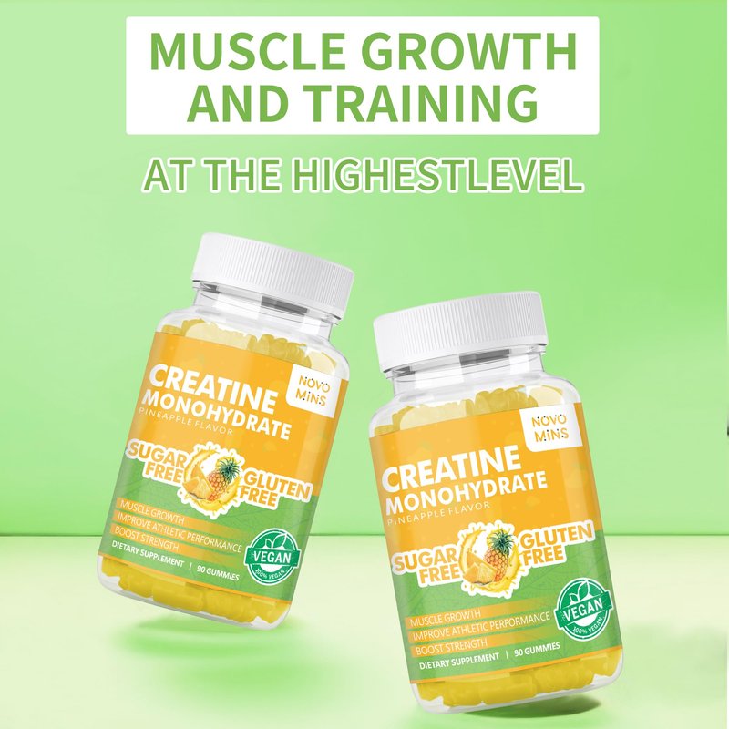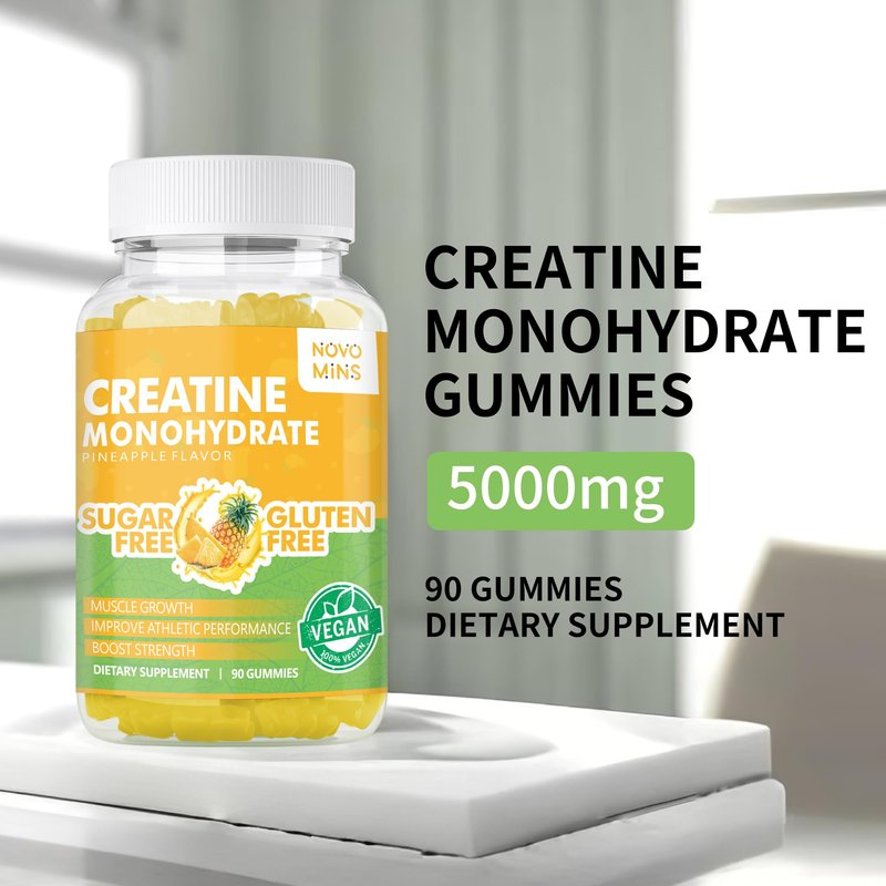 novomins Creatine Monohydrate Gummies 5000mg for Men & Women, Chewables Creatine Monohydrate for Muscle Strength, Muscle Builder, Energy Boost, Pre-Workout Supplement(90 Count)-Pineapple Flavor.