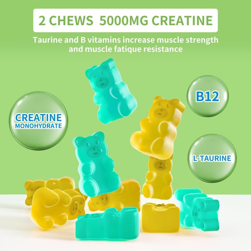 - [ Key Benefits]: Our Creatine monohydrate gummies are an easy way to consume, 2 gummies per serving, you can take it at any time, any place. It improved muscle strength, muscle recovery, improve endurance and energy boost. Suitable for a variety of users, and enjoyable taste.