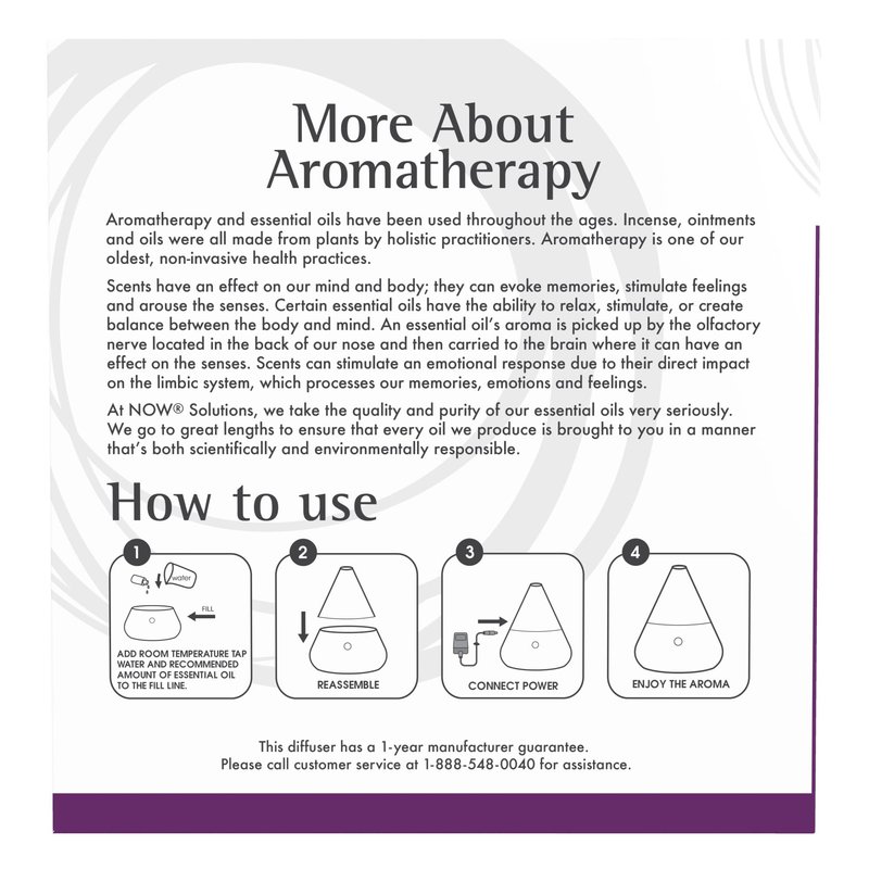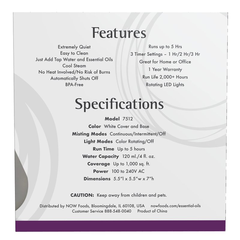 NOW Foods Essential Oils, Ultrasonic Aromatherapy Oil Diffuser, Extremely Quiet, Heat Free and Easy to Clean, Color Changing LED Diffuser