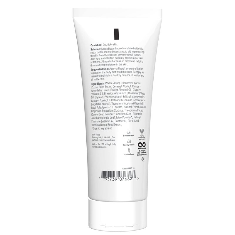 NOW Foods Solutions, Cocoa Butter Lotion for Dry and Flaky Skin, with Aloe Vera, Allatonin and Almond Oil, 8-Ounce