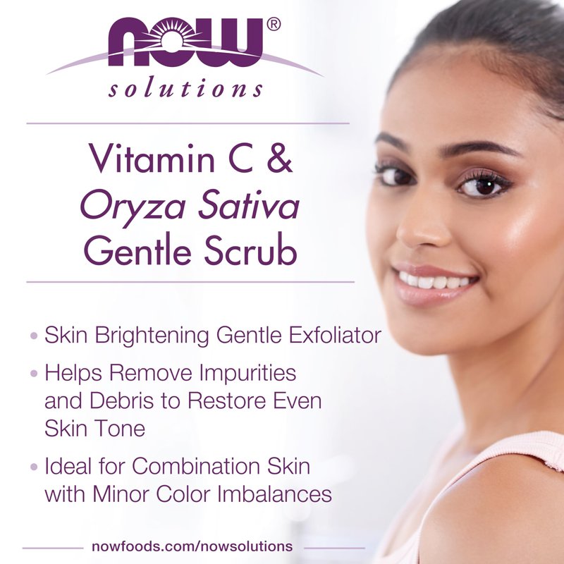 NOW Foods Solutions, Vitamin C and Oryza Sativa Gentle Scrub, Brightening System, Gentle Mild Exfoliation for Daily Use 4-Ounce