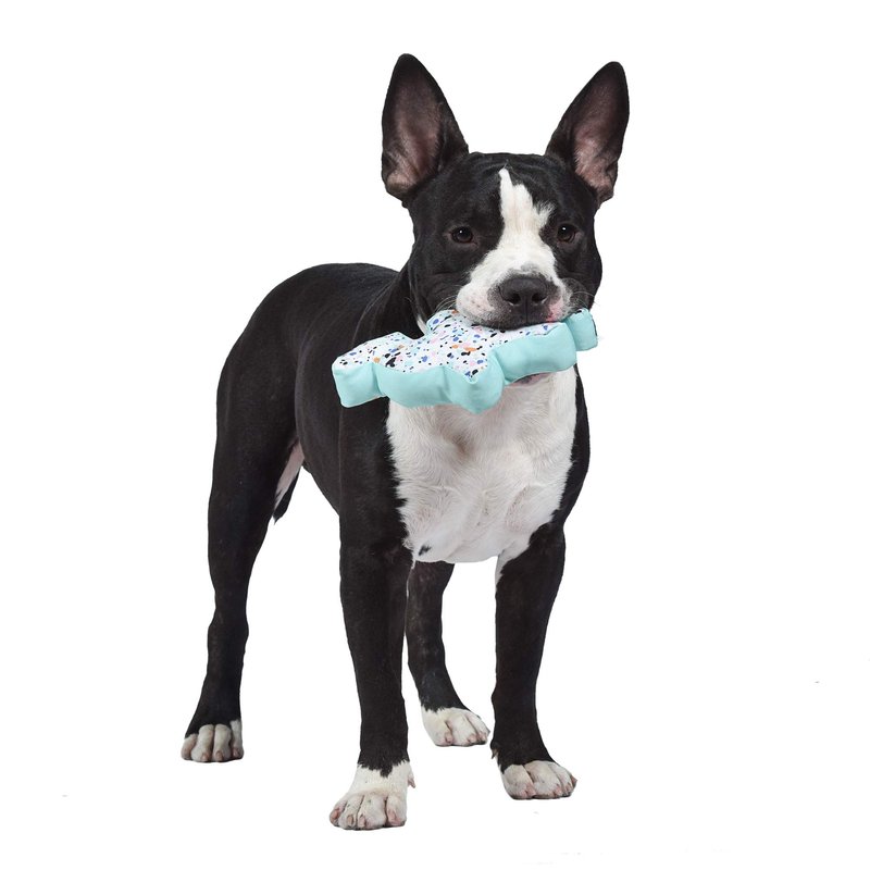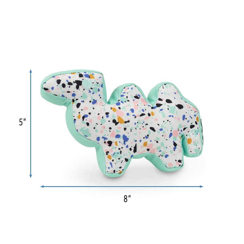 Introducing the Now House for Pets by Jonathan Adler Camel Chew Toy, a fabulous addition to your dog's toy collection. This adorable camel-shaped squeaky toy, standing at 5x5x9 inches, is perfect for light to medium chewers and designed for all life stages. Made of durable canvas material, it features a stylish Terrazzo motif in a soothing mint color, making it an attractive option for unisex dogs. Suitable for teething, this toy squeaks when squeezed, providing endless entertainment for your furry friend. The camel design is both whimsical and cartoonish, adding a playful touch to your dog's playtime. Indoor usage is recommended for this lightweight and portable toy. Experience the perfect blend of style and functionality with this Now House by Jonathan Adler Plush Toy.