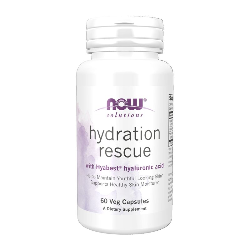 NOW Solutions, Hydration Rescue with Hyabest® hyaluronic acid, Helps Maintain Youthful Looking Skin*, Supports Healthy Skin Moisture*, 60 Veg Capsules
