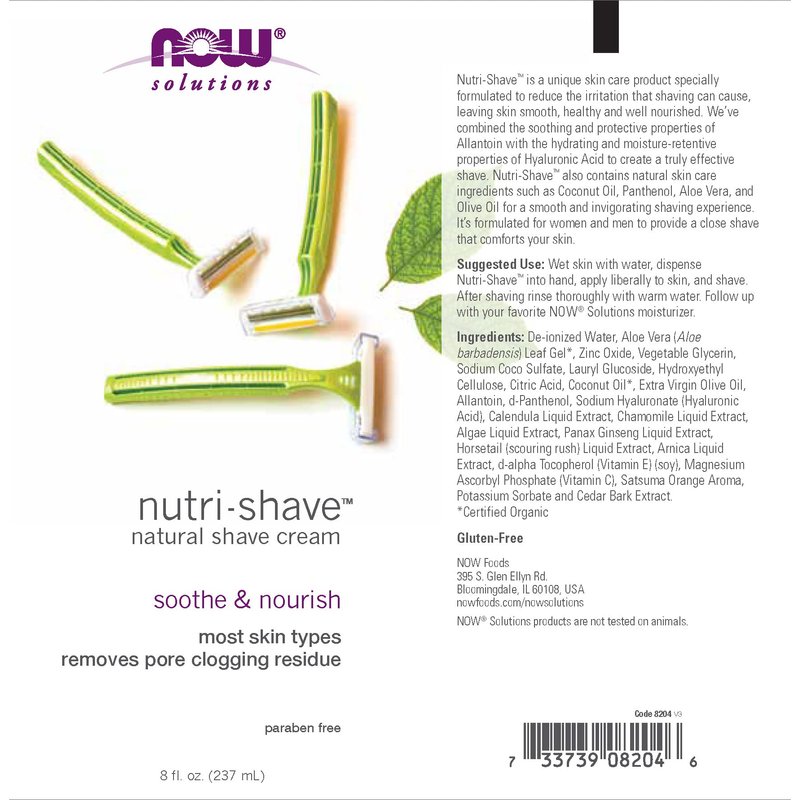 NOW Solutions, Nutri-Shave, Shave Cream, Removes Pore Clogging Residue, Reduces Irritation, 8-Ounce