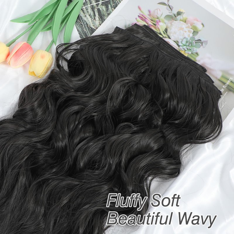 Clip in Long Wavy Synthetic Hair Extension 20 Inch 6PCS Thick Hairpieces Fiber Double Weft Hair for Women