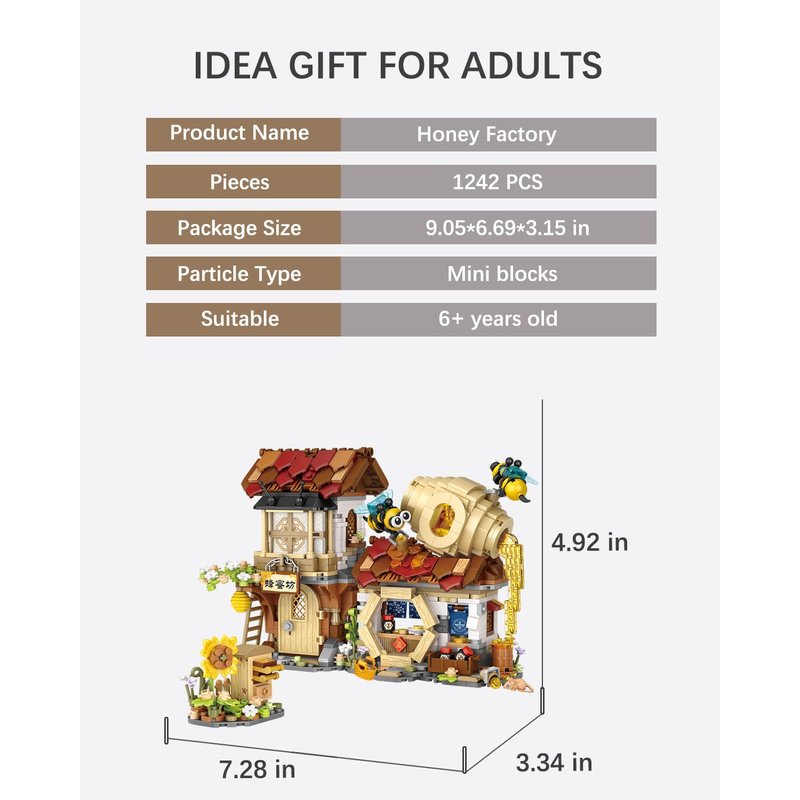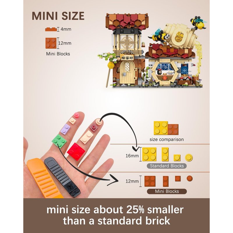 - High Quality: Honey Factory building set with a beautiful box, made of safe ABS material, durable, lightweight, safe. The surface and edge of each block are smooth and burr free. All parts fit well and are not easy to loosen (mini size about 25% smaller than a standard brick)