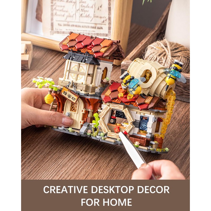 - Exquisite Designs: Every element of the store is displayed in this mini block model, rooftop honey pots with honey flow, and rich details such as decorations, plaques, structures, etc., so you can use your imagination to create a beautiful street scene