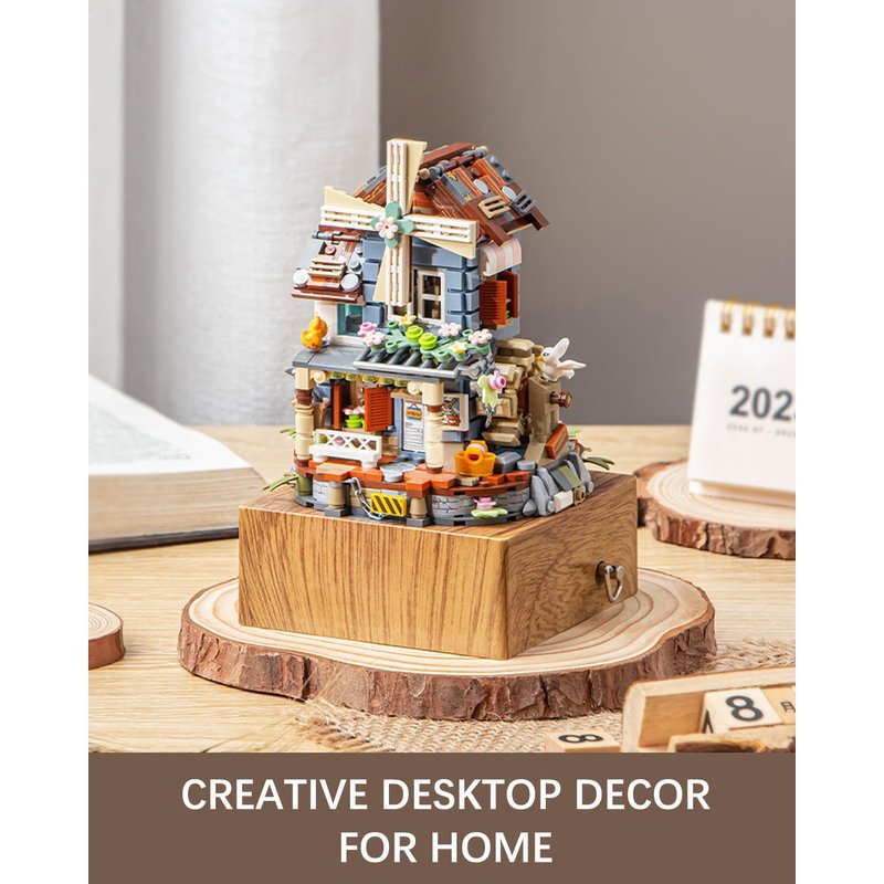 noziaa Music Box Building Blocks Set, Japanese Rustic Style Windmill House Toy Set, Mini Farm House MOC Creative Model, Gifts Idea for Kids Adults, Mini Blocks 799pcs (1239)