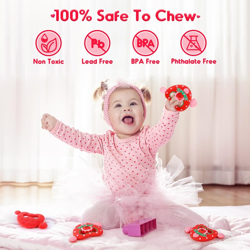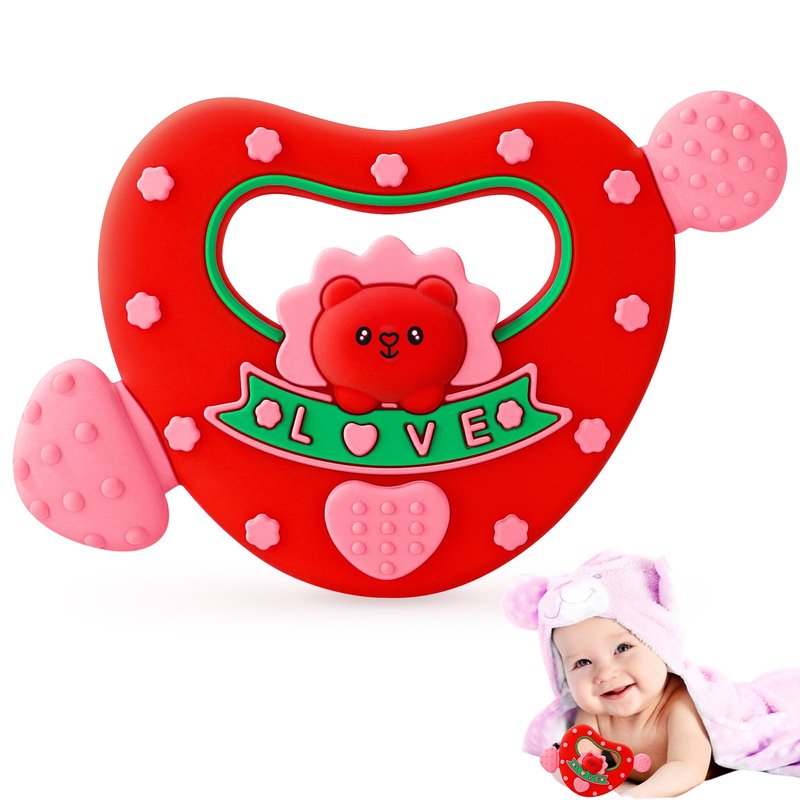 - đ ăPerfect Valentine's Day Giftă: Surprise your little one with the perfect Valentine's Day gift - our Heart & Bear Teether. The heartwarming design and exceptional quality make it a thoughtful expression of love. Crafted from premium silicone and featuring a bear motif, this teether is ideal for babies aged 3-12 months, providing comfort and joy during the teething phase. Celebrate the season of love with a gift that shows you care.