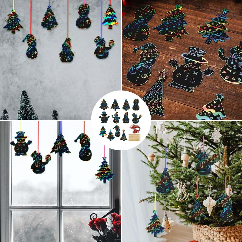 - Interesting DIY Game: This hanging craft art kit is a beautiful Christmas craft for kids and teens. Kids will use their imagination to draw any beautiful pattern on the scratch surface. You can hang the cute Christmas scratch-off ornaments on your Christmas tree or as wall decorations.