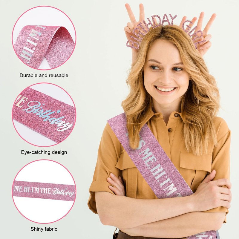 - Package Contents: You will receive 1 pink Birthday sash with 1 rhinestone headband. The elegant sash features the words "It's Me Hi I'm The Birthday Girl". They are beautiful and shiny, adding a touch of glamour to your birthday.