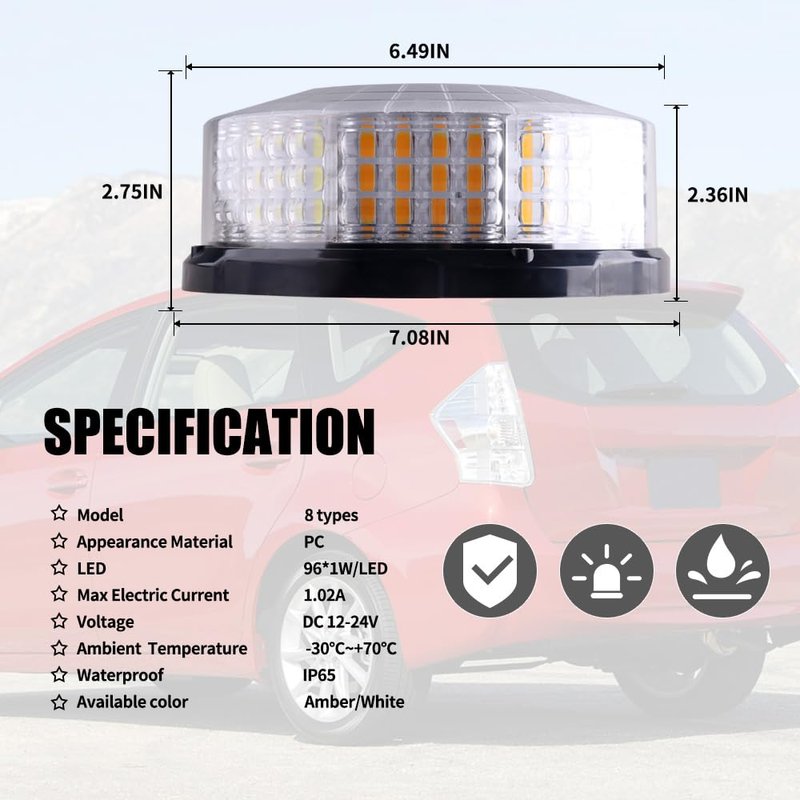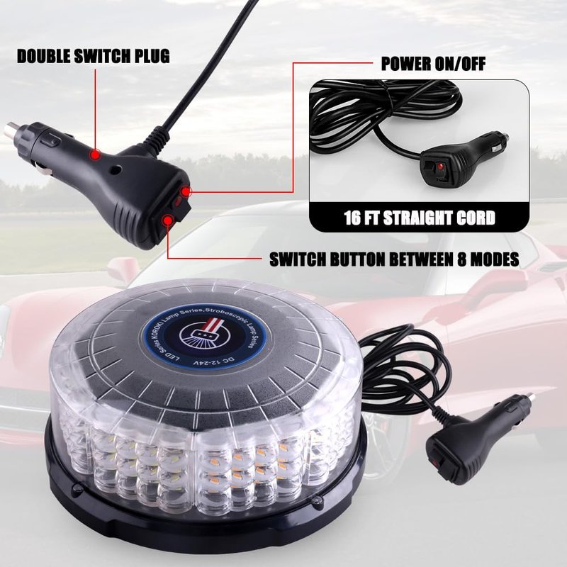 - ✅【High brightness design】Led Beacon Strobe Light use 96 high intensity LED chip 360 degree coverage, clear shell has excellent visibility and safety, emit high brightness caution lights, to ensure your driving safety in rain and snow and other low visibility conditions.