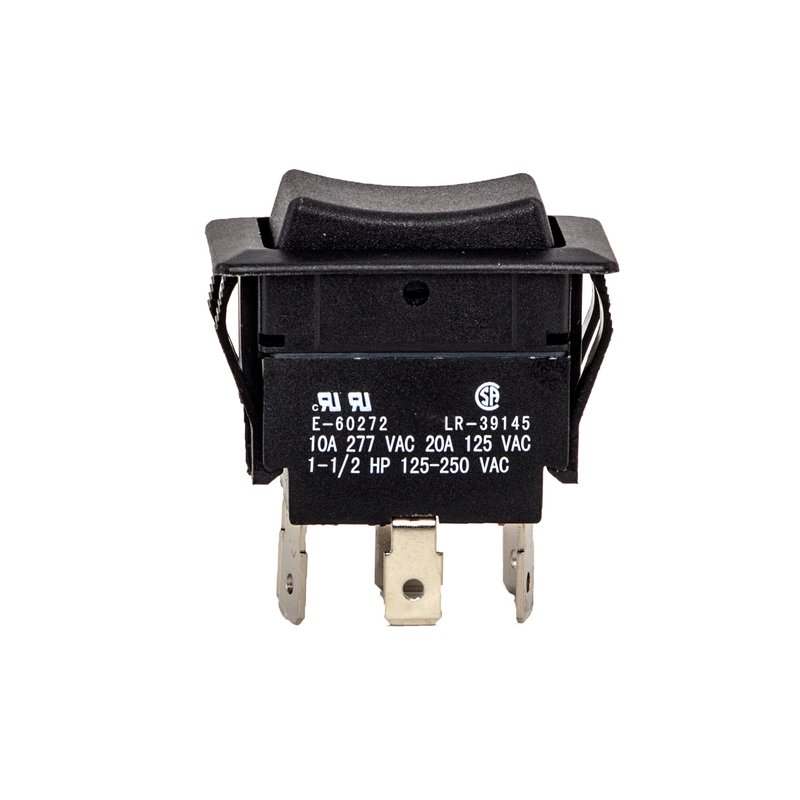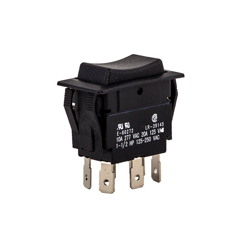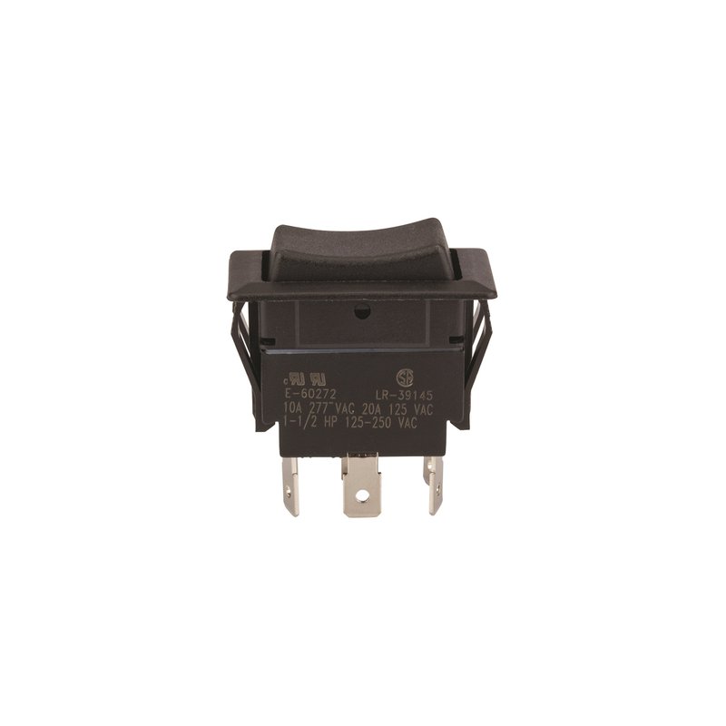 NSI 77060RQ Rocker Switch, On Off-On Circuit Function, DPDT, 20/10 amps at 125/250 VAC, 0.75" Width, 1.348" Height, 0.762" Depth, Black