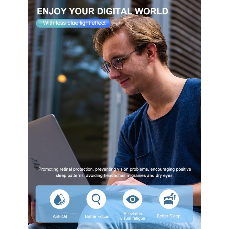 - 👨‍💻 IMPROVE SLEEP AND RELIEVE EYE 🎮 By blocking the blue light emitted from the screens which cause eye strain, headache, reduced focus and problems with vision, our screen glasses reduce the blue light exposure affects our sleep-wake cycles. The blue light blocker glasses will also reduce the discomfort of your eyes.