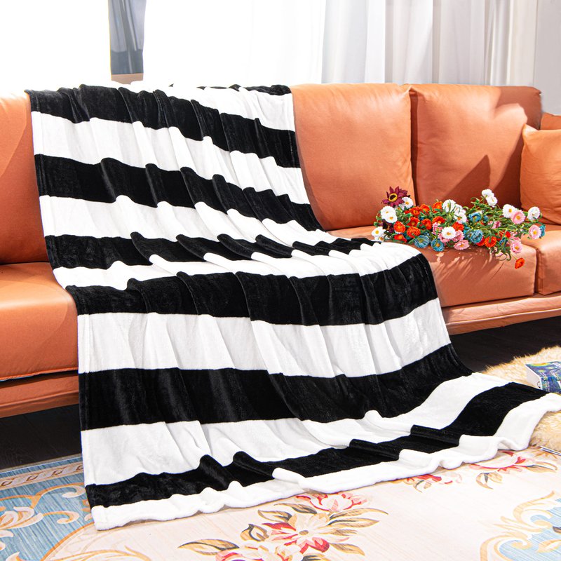 NTBAY Flannel Throw Blanket, Super Soft with Black and White Stripe (51"x68")