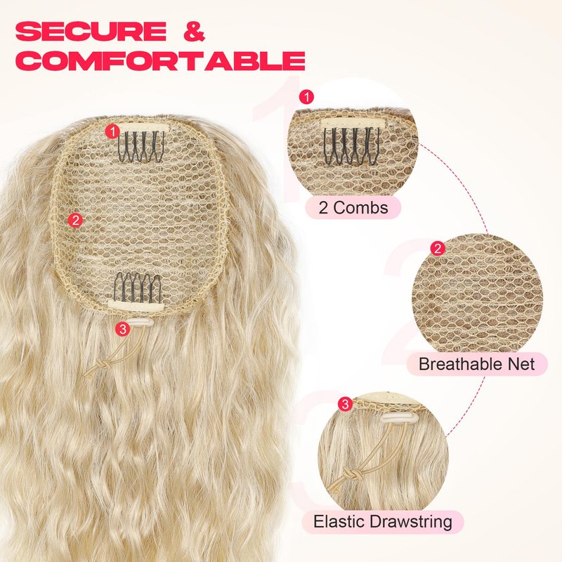 - 💗Comfortable & Secure Fit - Drawstring ponytail features soft, breathable netting, two inner combs, and a drawstring for secure attachment. Enjoy a lightweight, comfortable fit that can be worn for extended periods without damaging your natural hair