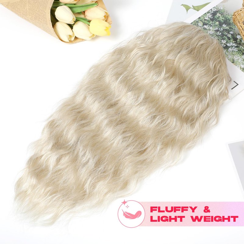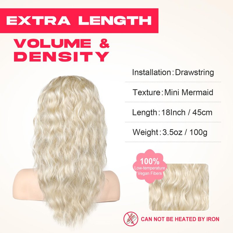 NTYNTY Ponytail Extension, 18" Super Lightweight Drawstring Ponytail Hair Extensions Natural Soft Synthetic Wavy Curly Pony Tail Hair Pieces for Women - Pearl blonde