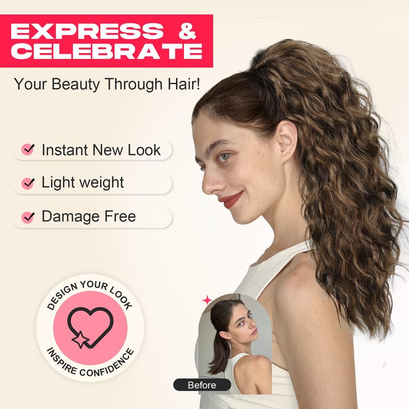 - 💗Time-Consuming & Beginner Friendly - No hair styling experience? No problem! This style-changing ponytail hairpiece is perfect for beginners. Simply slick back your hair, clip in the ponytail, and let the curls flow!